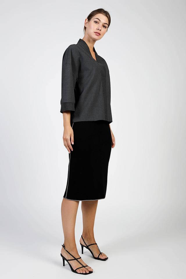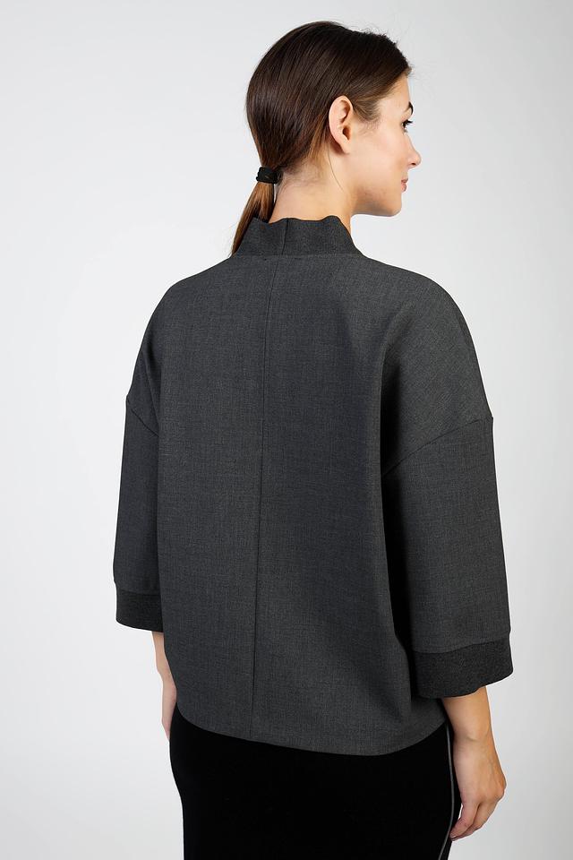 Серая блуза от Just Valeri с V-образным вырезом и рукавами 3/4. Модель выполнена из текстурированной ткани и имеет свободный крой, что обеспечивает комфорт и стиль. Состав: Состав_2 полиэстер 100%, полиэстер 64%, вискоза 32%, эластан 4%
