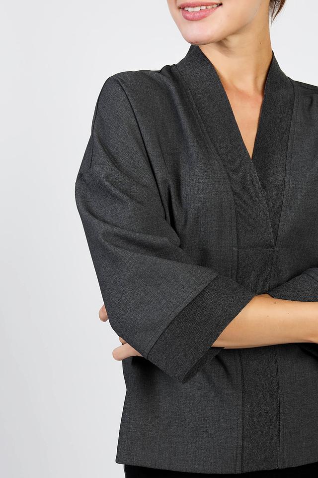 Состав ткани: 64% полиэстер, 32% вискоза, 4% эластан. Это сочетание материалов обеспечивает приятные тактильные ощущения, хорошую посадку и легкость в уходе.