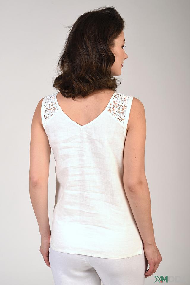 Лёгкий топ Just Valeri молочного цвета с изящной кружевной отделкой на плечах. Выполнен из натурального льна, обеспечивающего комфорт в жаркую погоду. Идеальный выбор для создания летних образов. Состав: лен 100%, Состав_отделка полиэстер 100%