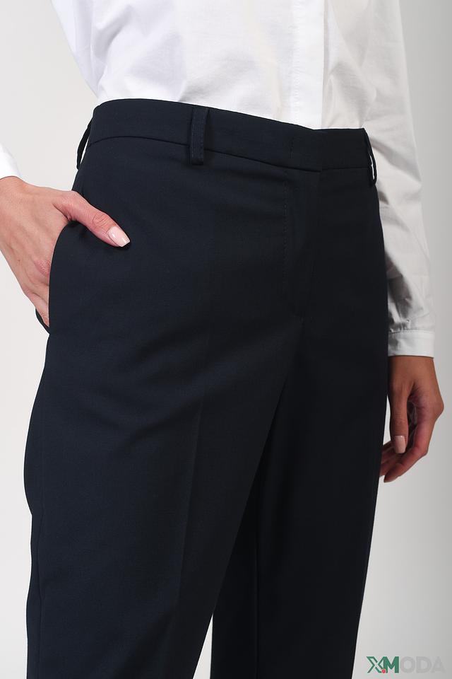 Женские брюки Kaos классического кроя, темно-синего цвета, с прямыми штанинами и стандартной посадкой. Модель выполнена из качественного смесового материала, обеспечивающего комфорт и долговечность. Состав: полиэстер 70%, вискоза 28%, эластан 2%