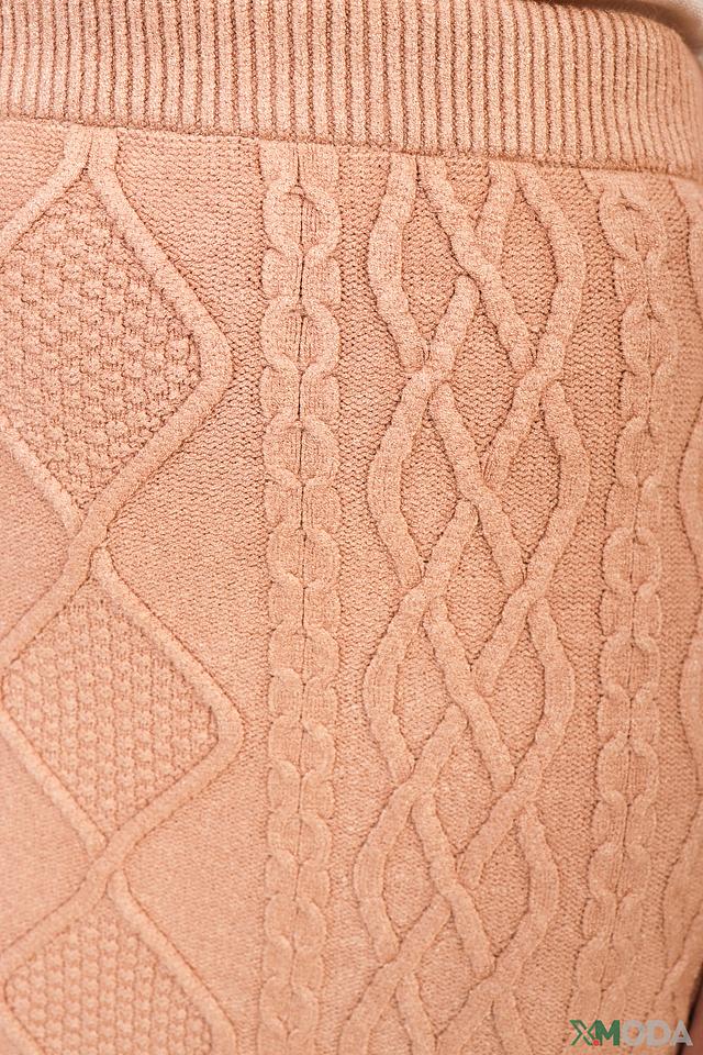 Юбка имеет классическую длину миди и облегающий силуэт, подчеркивающий фигуру. Вязаный узор в виде косичек придает изделию изысканность и оригинальность. Эластичный пояс обеспечивает удобную посадку по фигуре.