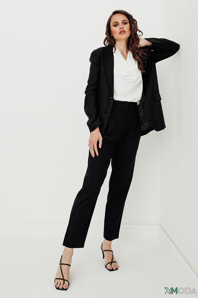 Особенности дизайна включают в себя складки на талии, которые придают брюкам более изысканный вид. Модель идеально подходит для создания как деловых, так и повседневных образов. Брюки хорошо сочетаются с блузками, рубашками и жакетами.