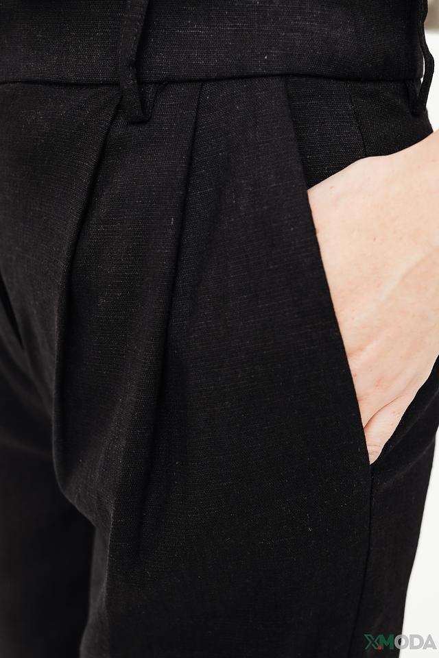 Брюки изготовлены из высококачественной ткани, состоящей из вискозы (73%), льна (22%), хлопка (3%) и эластана (2%). Такое сочетание материалов обеспечивает комфорт, воздухопроницаемость и лёгкость в уходе.