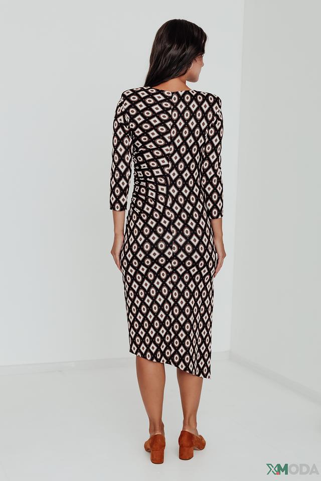 Это платье от Kaos – идеальный выбор для тех, кто ценит комфорт и стиль. Выполнено в классической чёрно-белой гамме с геометрическим принтом в виде ромбов, что делает его универсальным и подходящим для различных случаев.