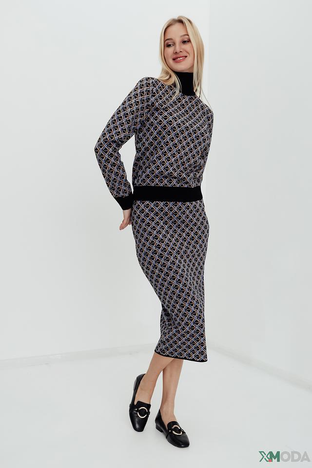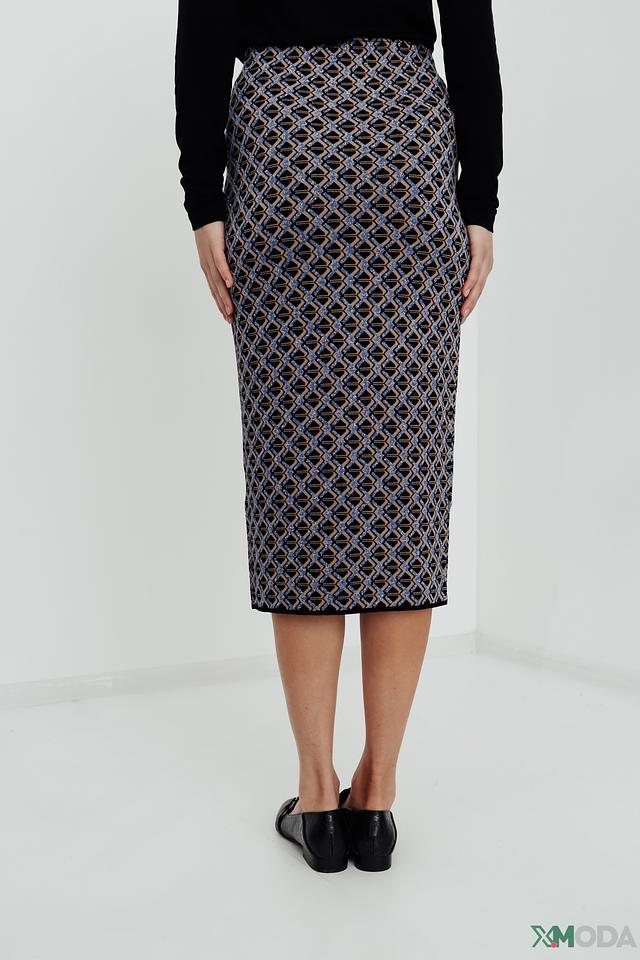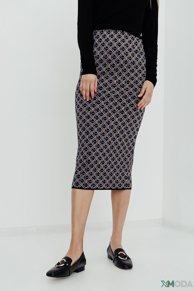 Юбка Kaos женская, выполнена в синих тонах с геометрическим принтом. Модель приталенного силуэта, длиной миди, идеально подойдет для создания элегантного образа. Состав: вискоза 71%, полиэстер 24%, полиамид 5%