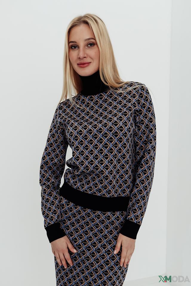 Особенностью этой водолазки является оригинальный геометрический узор, выполненный в сочетании синих, коричневых и бежевых оттенков. Эта модель станет ярким акцентом в вашем образе и подчеркнет ваш индивидуальный стиль.