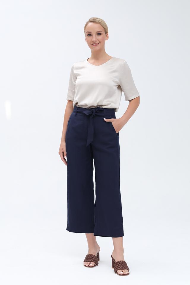 Темно-синие капри Zerres — стильная и удобная модель с поясом-завязкой. Изготовлены из натурального сочетания лиоцелла и льна, обеспечивающего комфорт и воздухопроницаемость. Идеальный выбор для создания повседневных образов. Состав: лиоцел 67%, лен 33%
