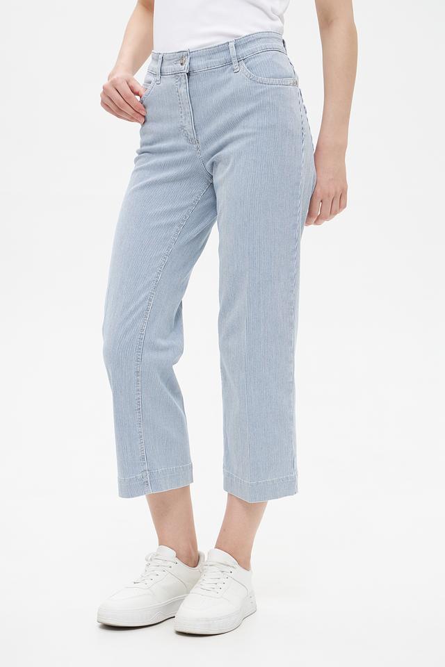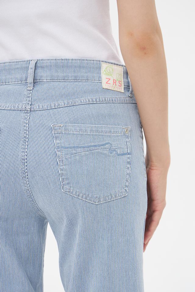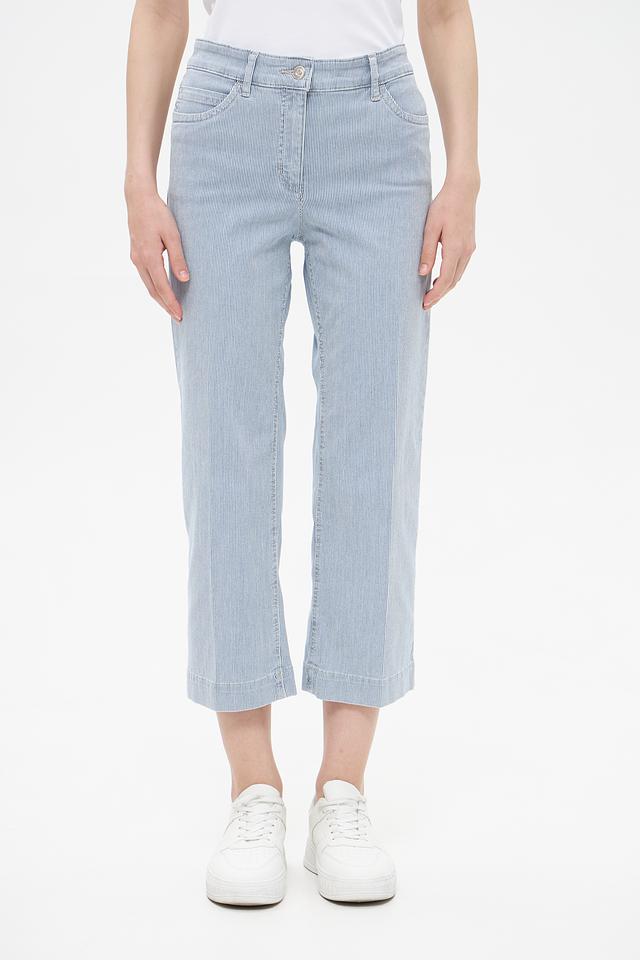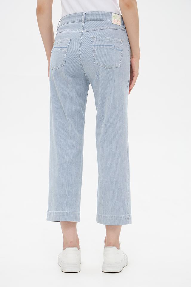Женские капри ZRS голубого цвета в вертикальную полоску — стильное и комфортное решение для летнего гардероба. Модель выполнена из высококачественного хлопка с добавлением эластана, обеспечивающего удобную посадку. Состав: хлопок 93%, эластан 5%, эластомультиэстер 2%