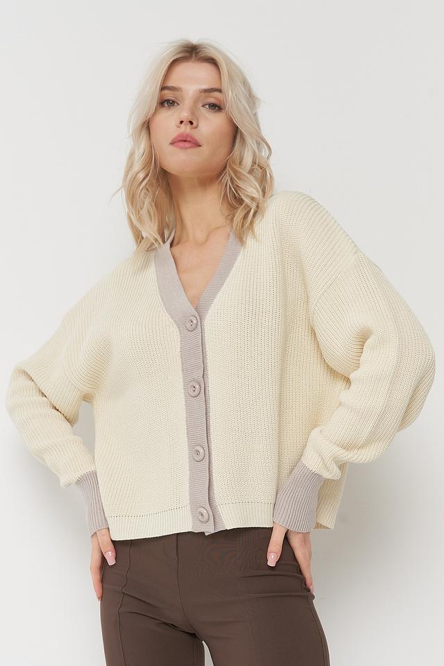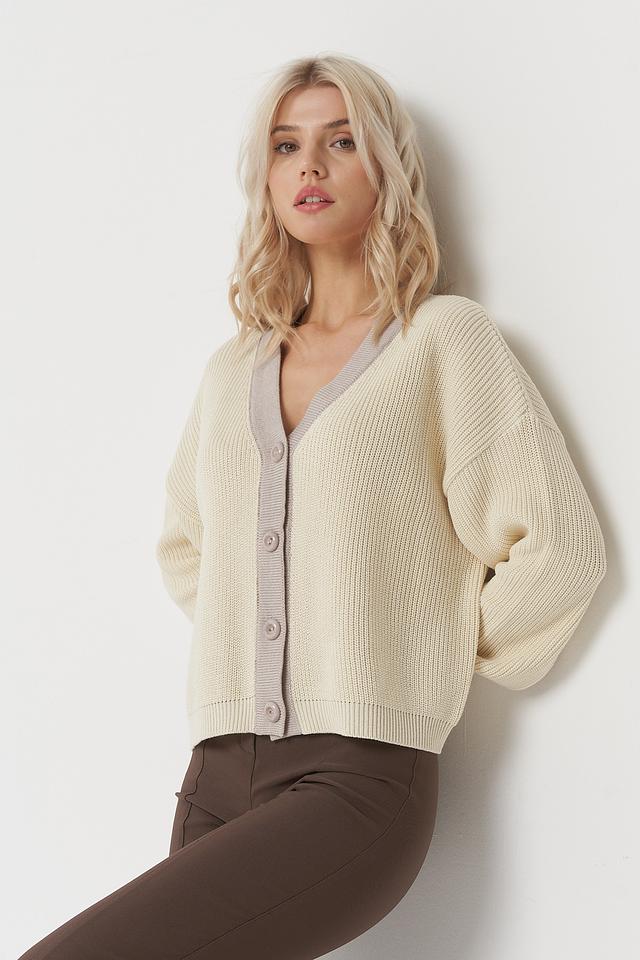 Кремовый кардиган от BE YOU с контрастной серой отделкой и застежкой на пуговицы. Изготовлен из мягкого и приятного к телу сочетания хлопка и полиакрила. Идеально дополнит повседневный гардероб. Состав: хлопок 50%, пан 50%