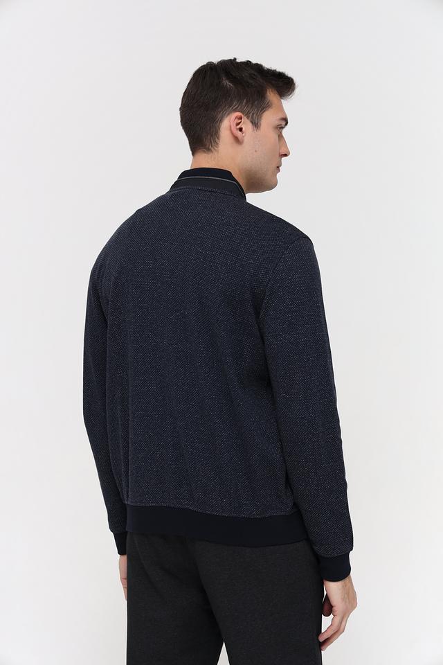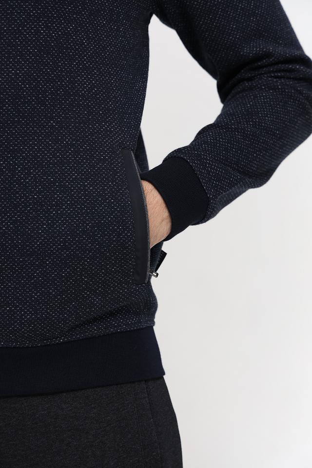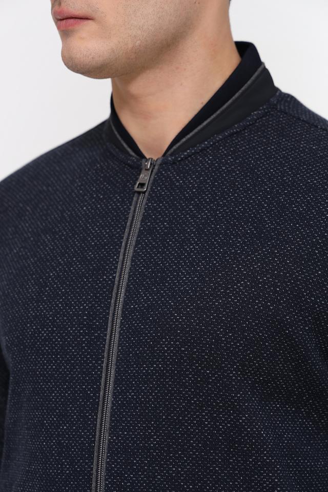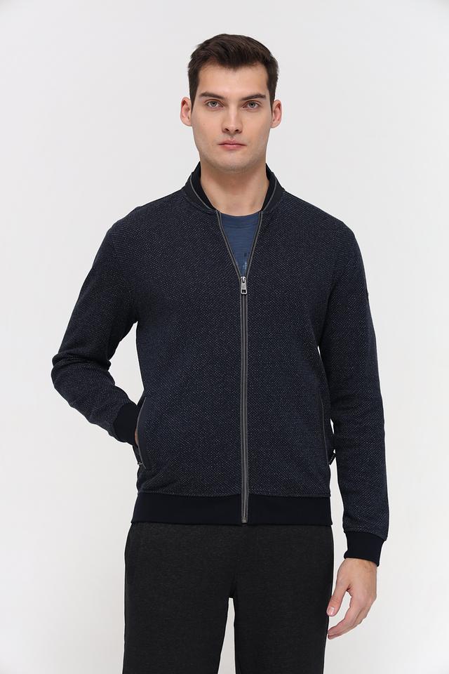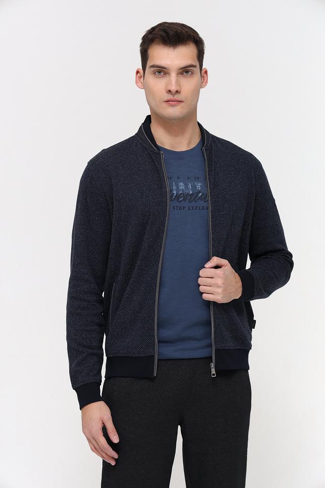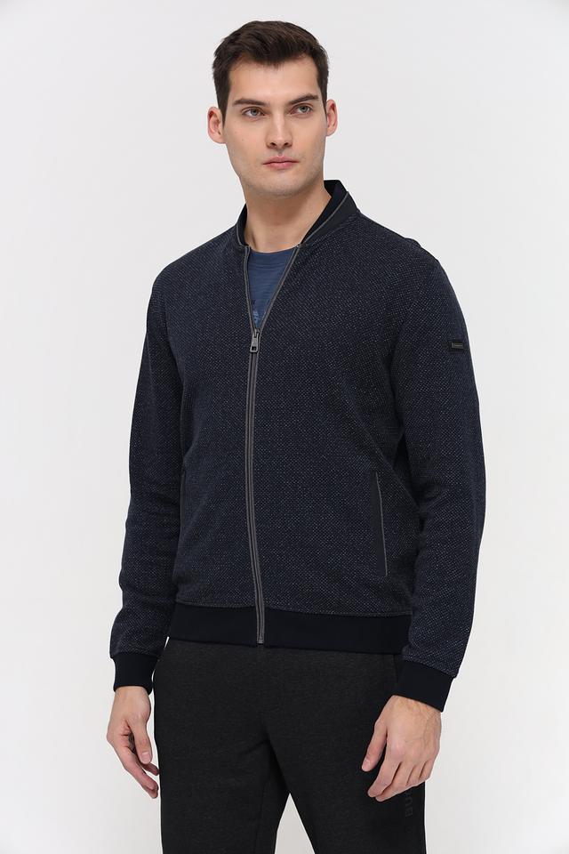 Мужской кардиган Bugatti тёмно-синего цвета с меланжированным узором. Изготовлен из 100% хлопка, обеспечивающего комфорт и воздухопроницаемость. Застежка – молния. Состав: хлопок 100%