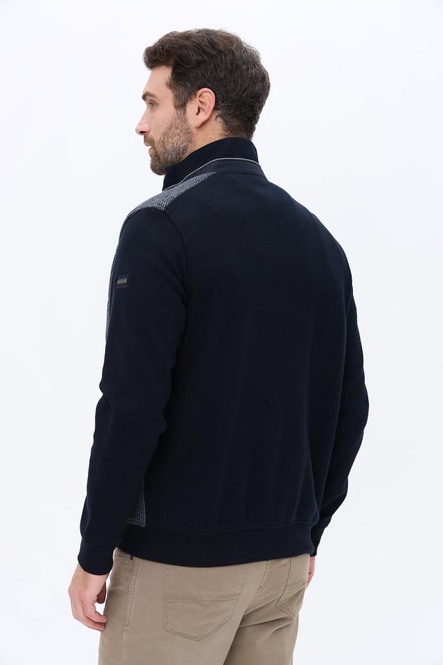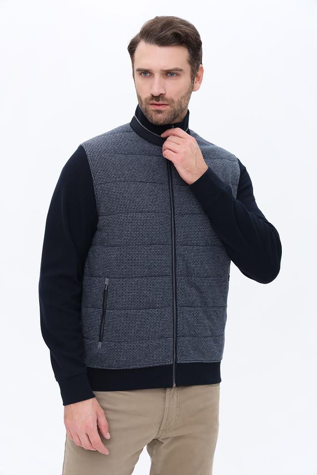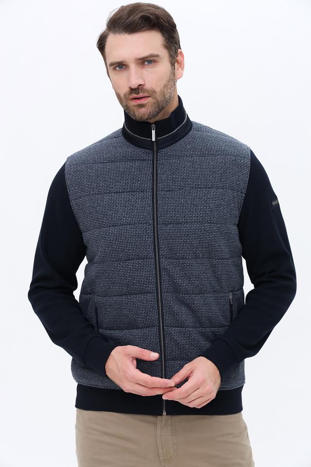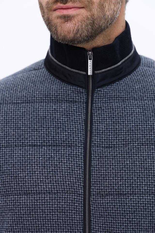 Мужской кардиган Bugatti синего и серого цвета – стильное сочетание комфорта и элегантности. Модель выполнена из хлопка с добавлением полиэстера, имеет застежку-молнию и боковые карманы. Состав: хлопок 75%, полиэстер 25%