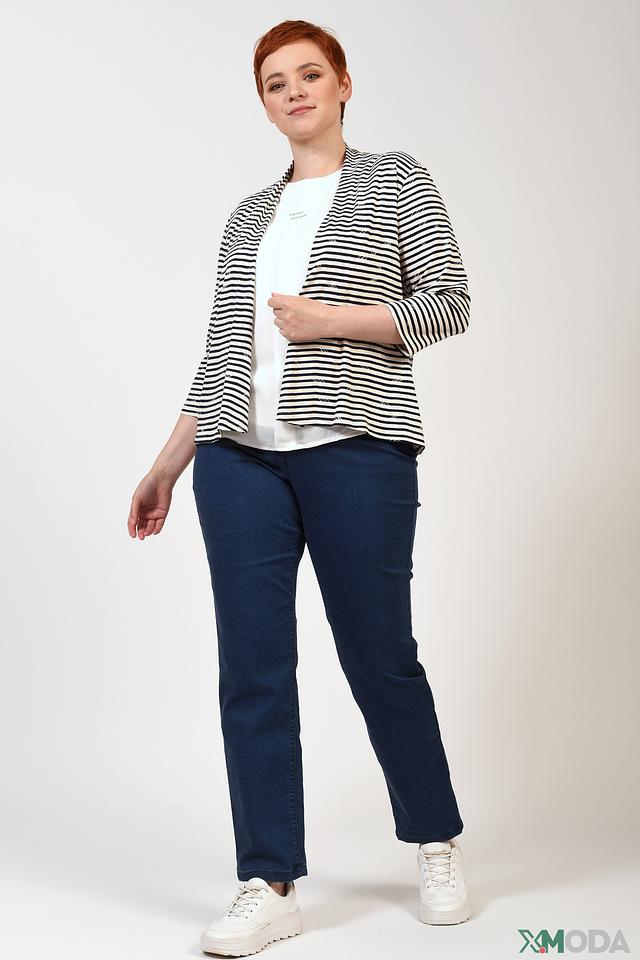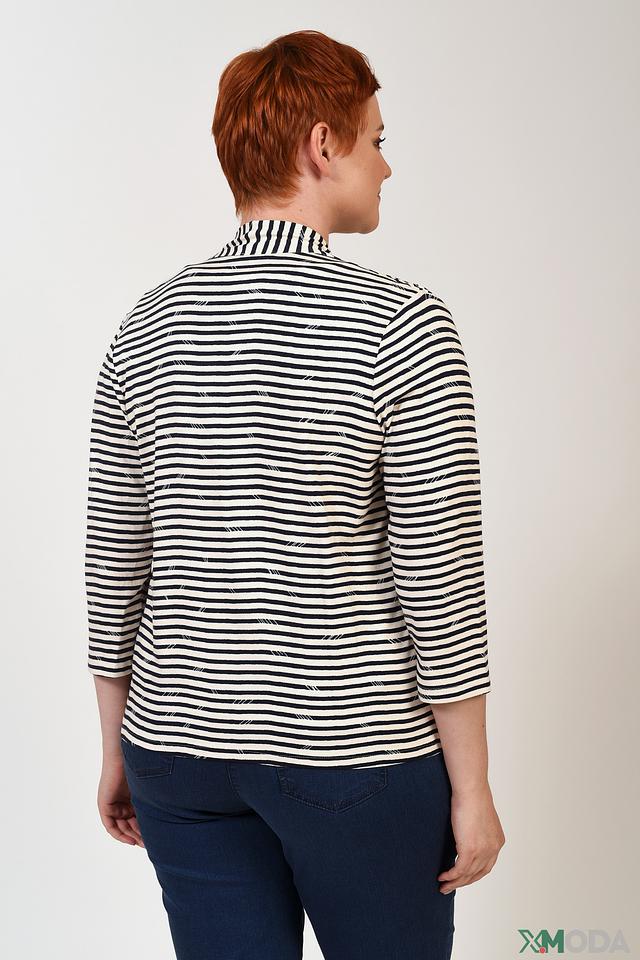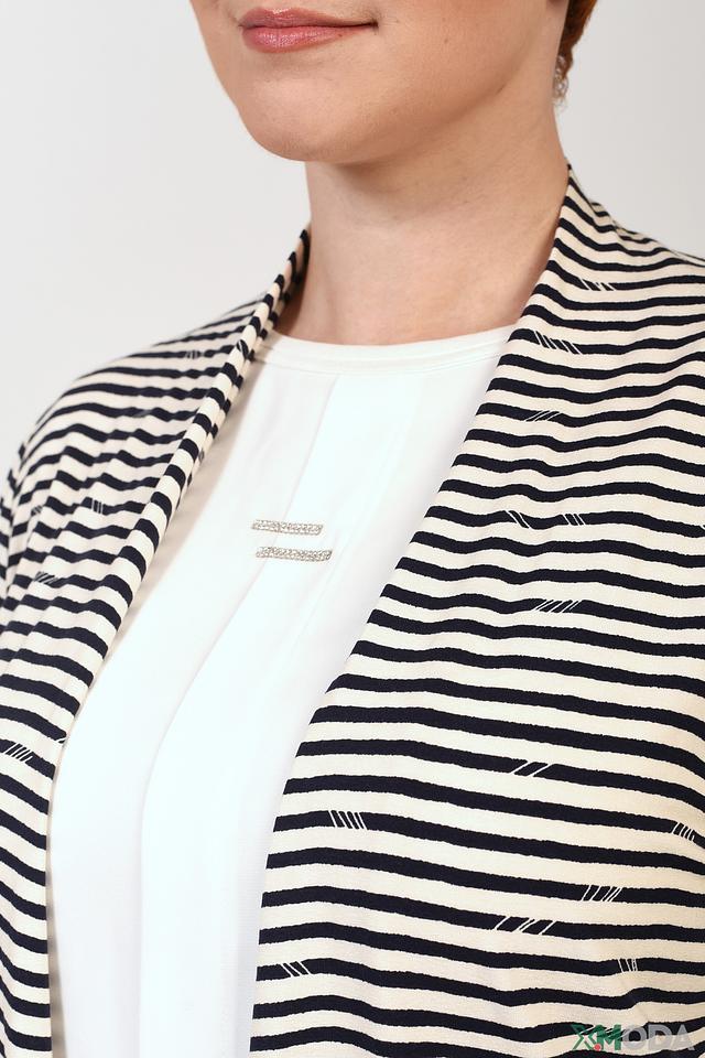 Женский кардиган Lebek чёрно-белого цвета с полосатым принтом. Модель выполнена из мягкой вискозы с добавлением эластана, что обеспечивает комфорт и хорошую посадку по фигуре. Состав: вискоза 96%, эластан 4%