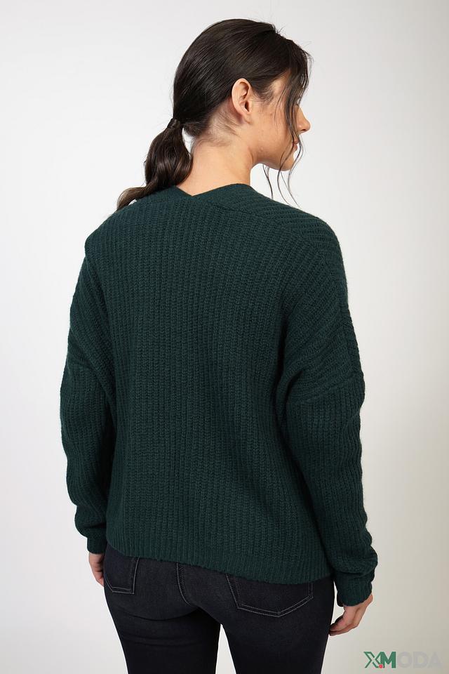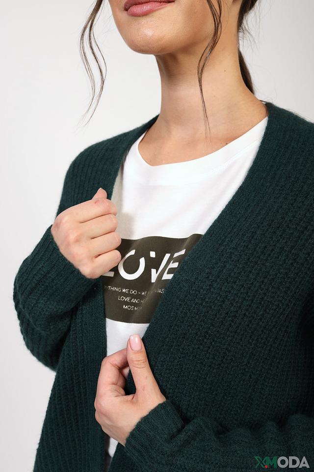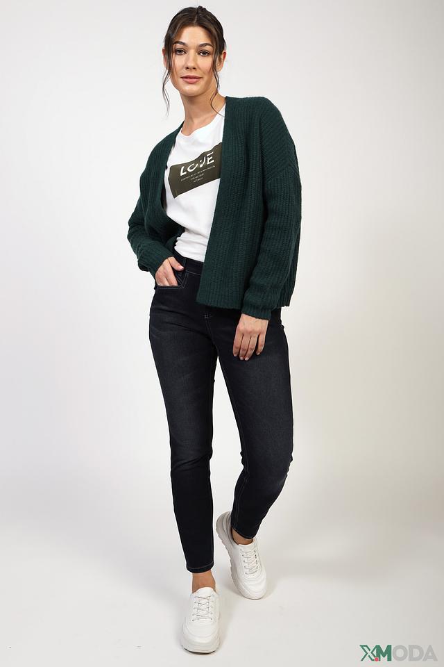 Кардиган имеет классический V-образный вырез и свободный крой, что обеспечивает удобную посадку по фигуре. Крупная вязка придает изделию объём и фактурность. Длинные рукава и открытая конструкция позволяют носить кардиган поверх различных видов одежды.