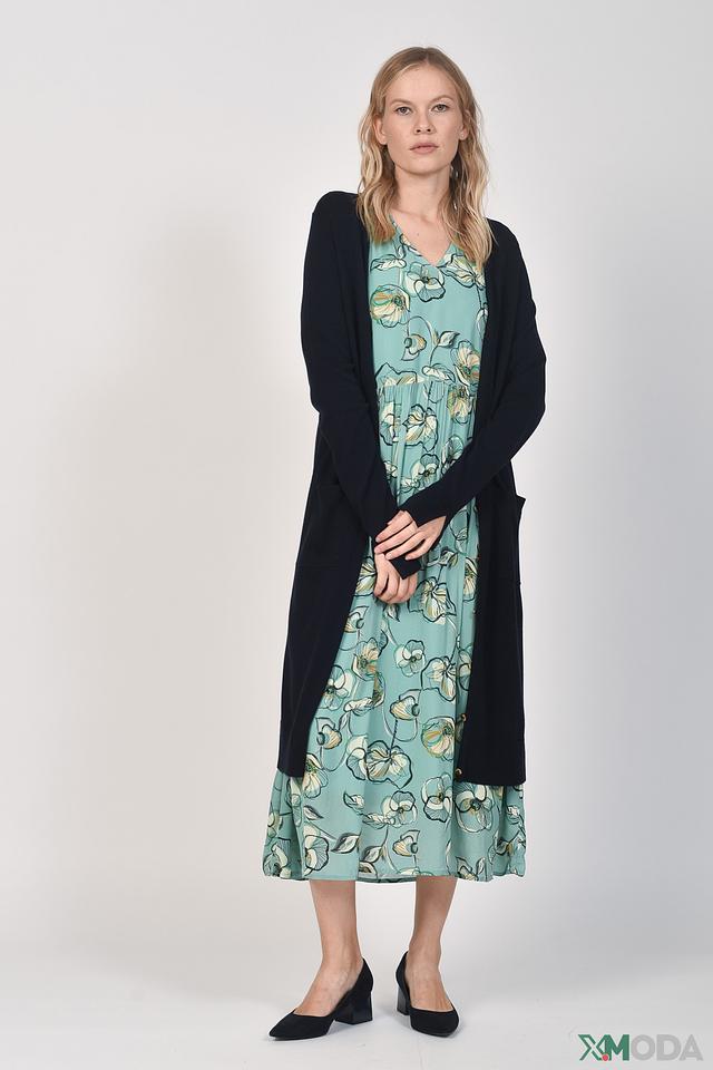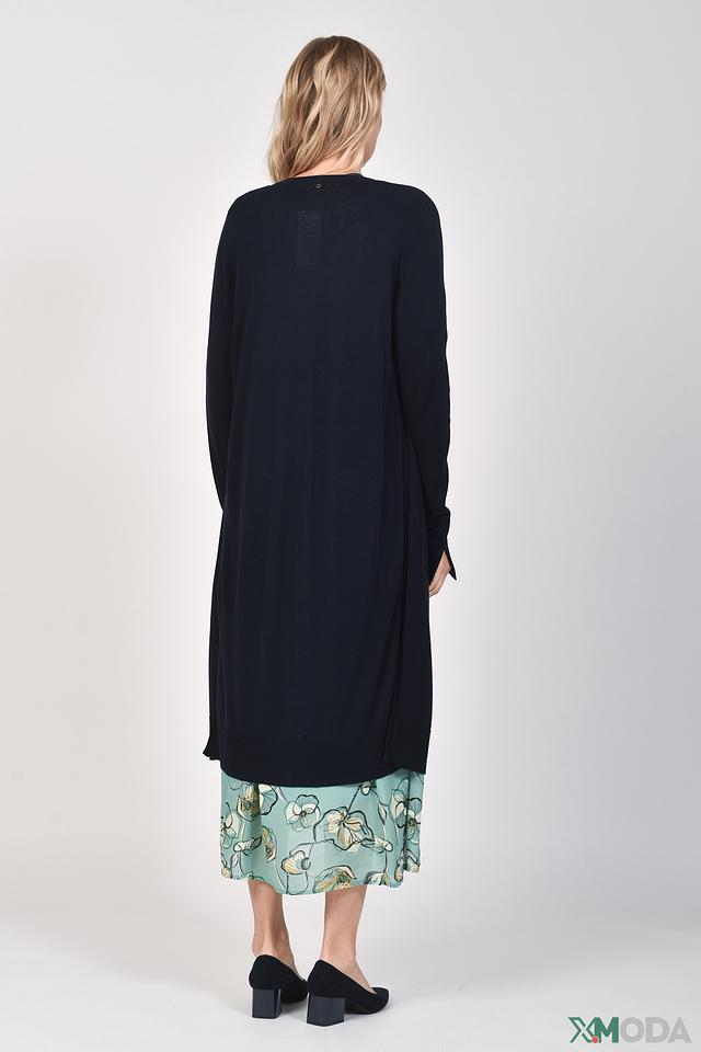 Длинный крой кардигана позволяет создавать различные образы – от повседневных до более элегантных. Отсутствие застежек делает его легким и удобным в использовании. Прямой, свободный силуэт не сковывает движений и подходит для любой фигуры.