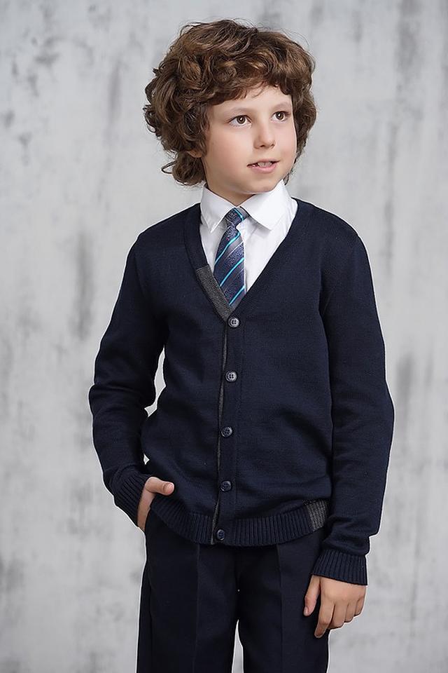 Этот кардиган идеально сочетается с рубашками, футболками и брюками, создавая стильный и удобный образ для школы или повседневной носки. Практичный и универсальный, он станет незаменимой вещью в гардеробе вашего ребенка.