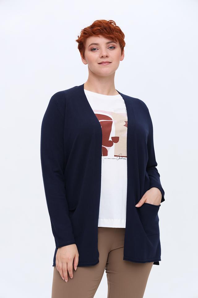 Кардиган имеет прямой крой, длинные рукава и открытый фасад без застежек. Боковые карманы добавляют функциональности и практичности. Изготовлен из мягкой и приятной к телу ткани, состоящей из 72% вискозы и 28% полиамида, что обеспечивает комфорт при носке.