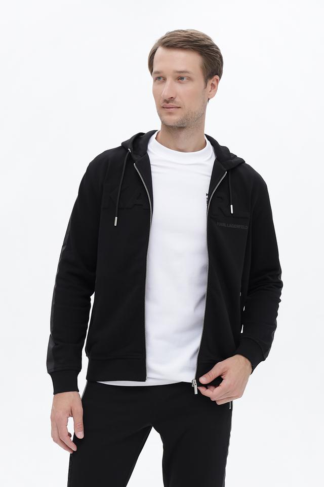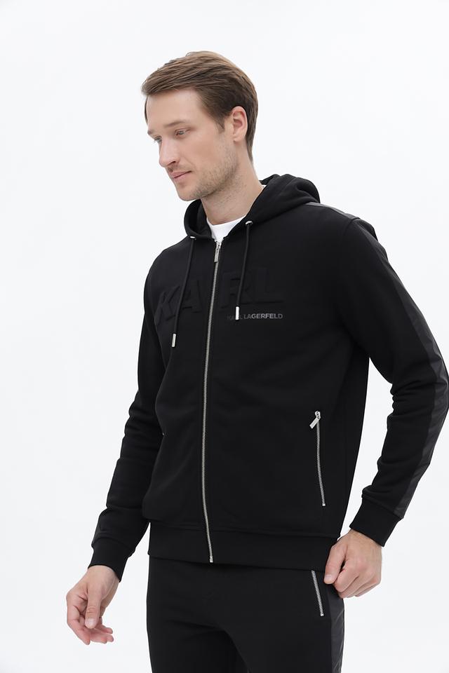 Кардиган имеет удобную застёжку-молнию, капюшон со шнурками и два боковых кармана. Логотип бренда Karl Lagerfeld размещён на груди, добавляя изделию узнаваемости и стиля.
