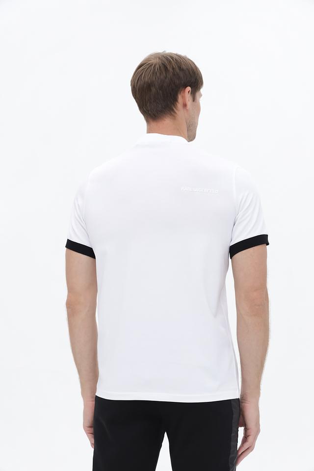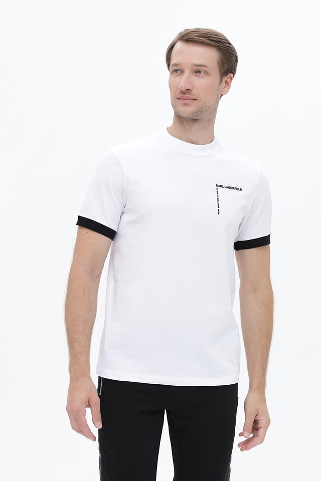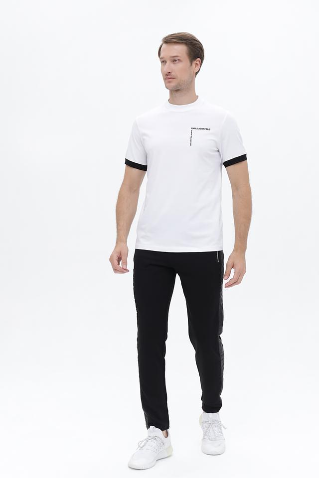 Белая футболка Karl Lagerfeld с чёрной отделкой на рукавах и принтом логотипа. Изготовлена из мягкого хлопка с добавлением эластана для комфорта и лучшей посадки. Состав: хлопок 95%, эластан 5%