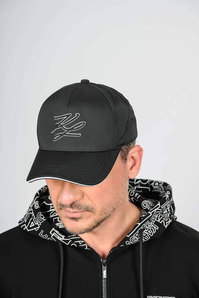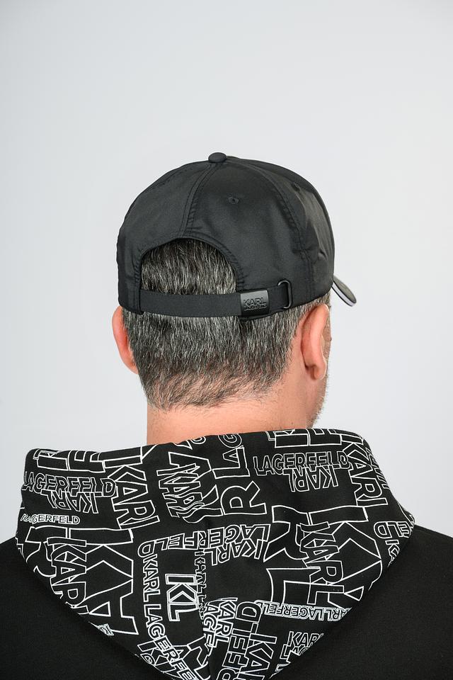 Бейсболка украшена вышитым логотипом Karl Lagerfeld, который подчеркивает её принадлежность к премиальному бренду. Козырек имеет контрастную белую окантовку, добавляющую динамичности дизайну. Регулируемая застежка позволяет подогнать размер под индивидуальные параметры.