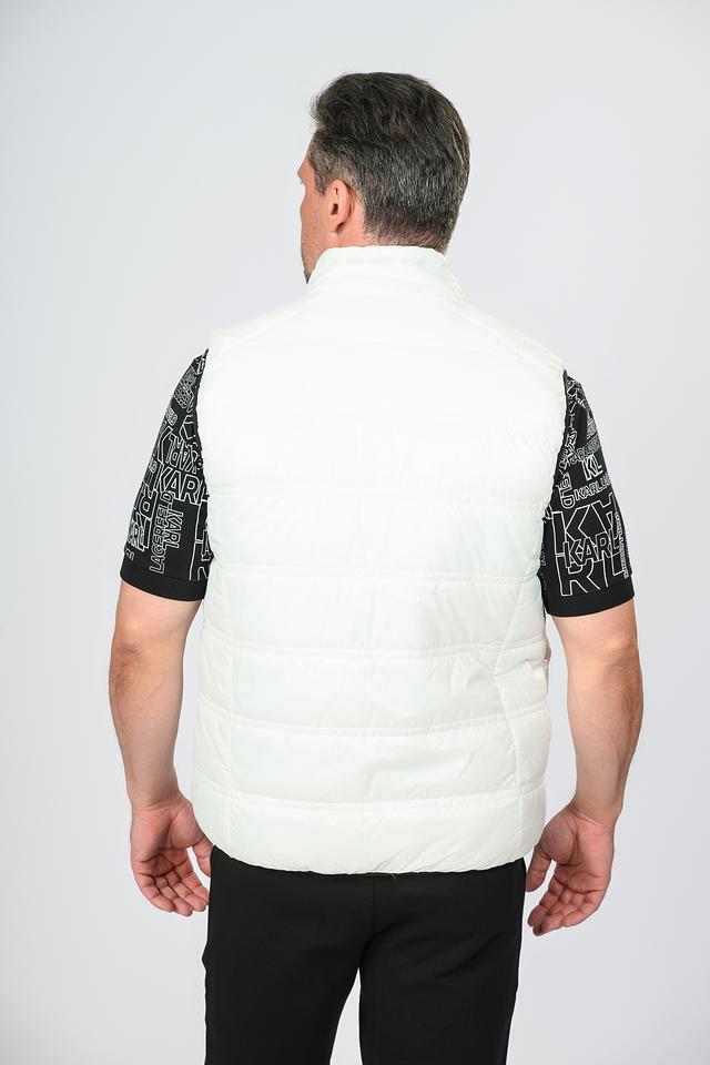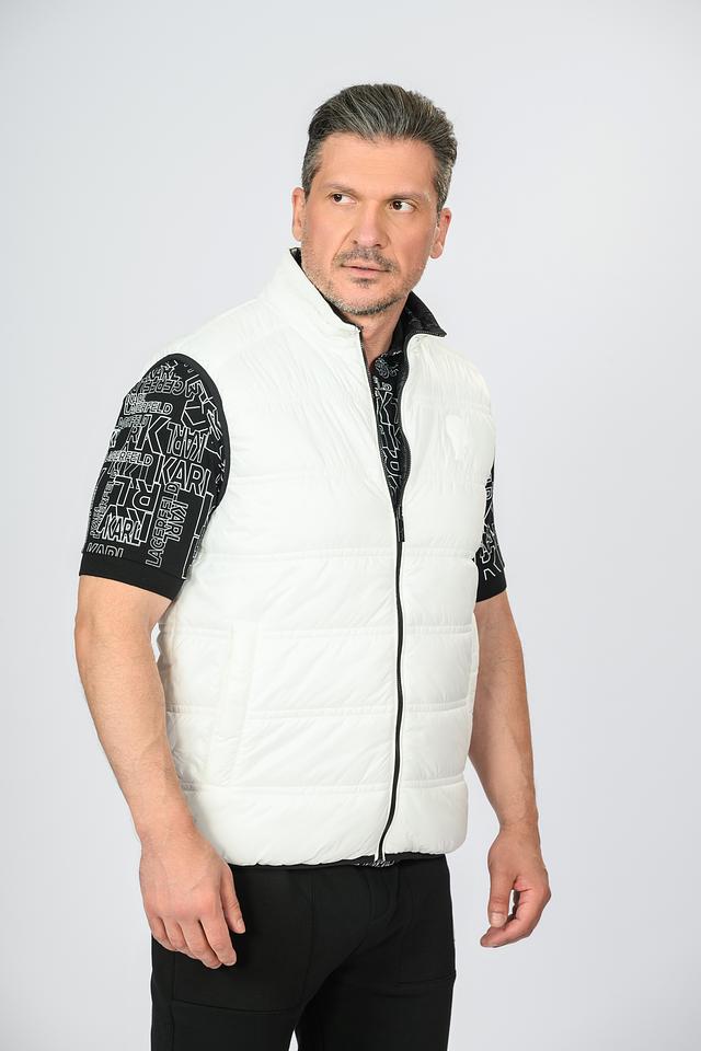 Особенностью модели является стеганая текстура, придающая ей стильный вид. Застежка-молния обеспечивает удобство надевания и снятия. Жилет украшен принтом с логотипом Karl Lagerfeld, что подчеркивает его принадлежность к премиальному бренду.