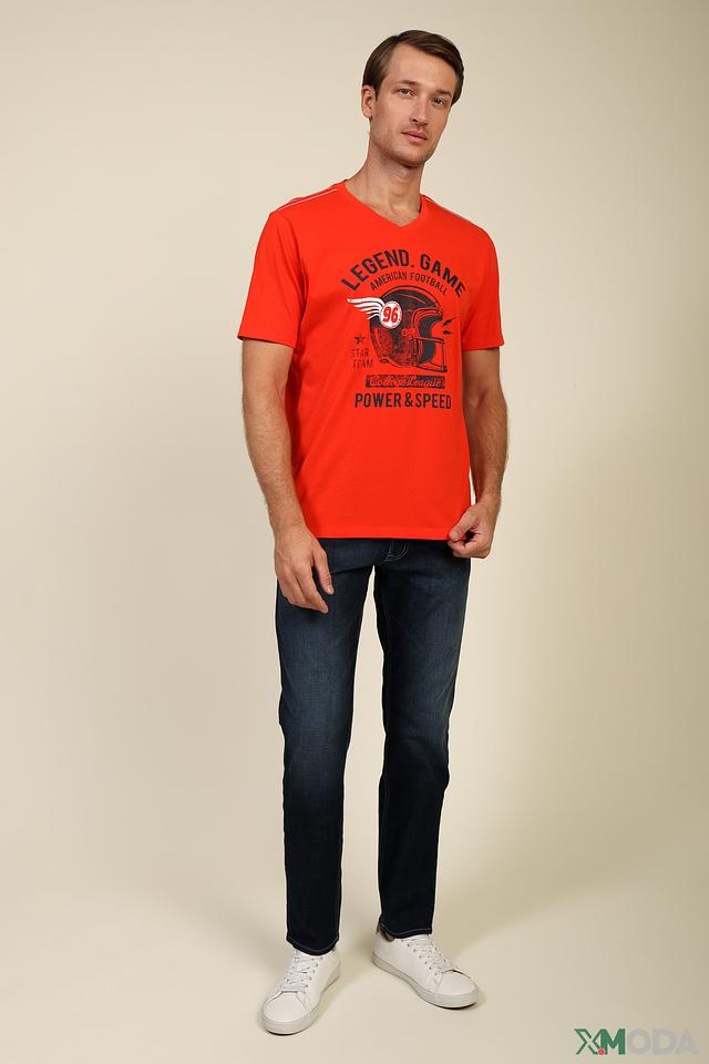 Футболка имеет классический прямой крой, короткий рукав и круглый вырез горловины. Изготовлена из высококачественного 100% хлопка, что обеспечивает приятные тактильные ощущения и комфорт при носке.