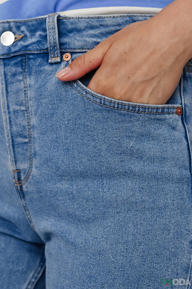 Джинсы имеют классический прямой крой, который обеспечивает комфортную посадку по фигуре. Высокая посадка визуально удлиняет ноги и подчеркивает талию. Ткань состоит из 99% хлопка и 1% эластана, что обеспечивает удобство в носке и сохранение формы.