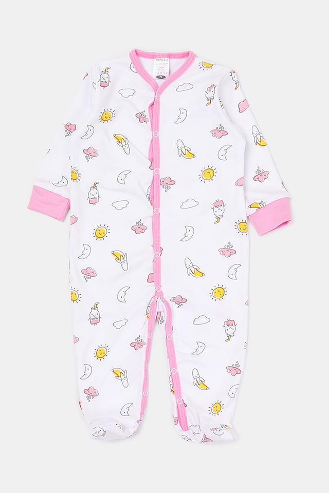 Комбинезон выполнен из 100% хлопка – натурального, дышащего и гипоаллергенного материала, который бережно заботится о нежной коже малыша. Принт с изображением солнышек, луны, баночек и других милых элементов создает игривое настроение.