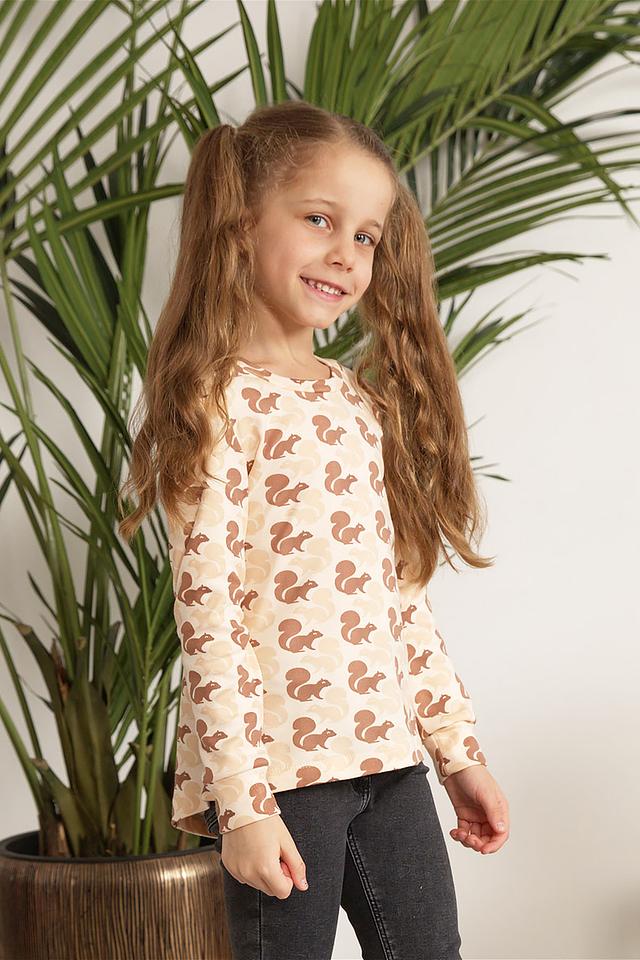 Детская футболка КотМарКот бежевого цвета с очаровательным принтом в виде белок. Изготовлена из мягкого и приятного к телу хлопка, обеспечивая комфорт в течение всего дня. Прекрасный выбор для повседневной носки. Состав: хлопок 100%