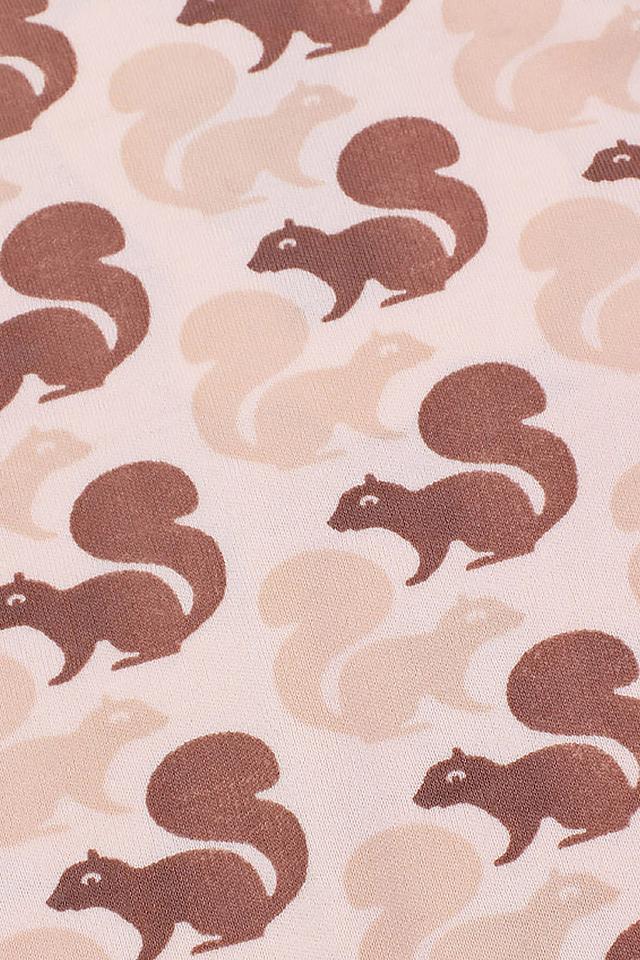 Эта милая футболка от бренда КотМарКот станет отличным дополнением к гардеробу вашей девочки. Футболка выполнена в нежном бежевом цвете и украшена забавным принтом с изображением белок.