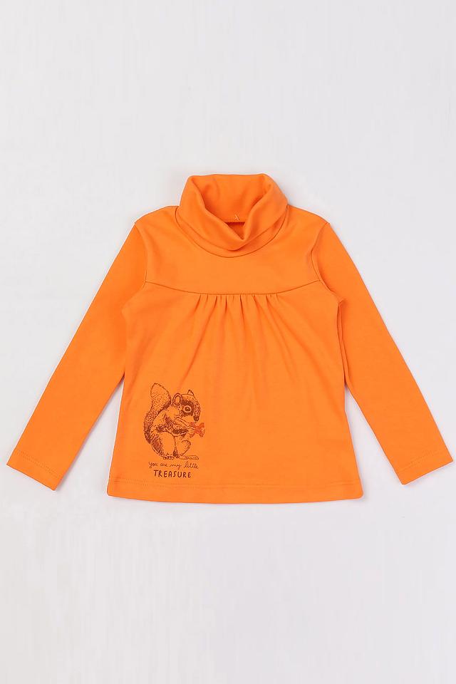 Оранжевый джемпер от КотМарКот для девочки с длинным рукавом и высоким воротником. Модель украшена забавным принтом белки и надписью "You are my little TREASURE". Изготовлен из мягкого и приятного к телу хлопка. Состав: хлопок 100%