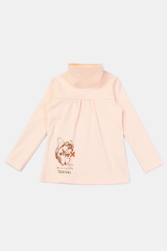 Бежевый джемпер от КотМарКот для девочки с длинным рукавом и высоким воротником. Модель украшена милым принтом с бельчонком и надписью. Изготовлен из мягкого и приятного к телу хлопка. Состав: хлопок 100%
