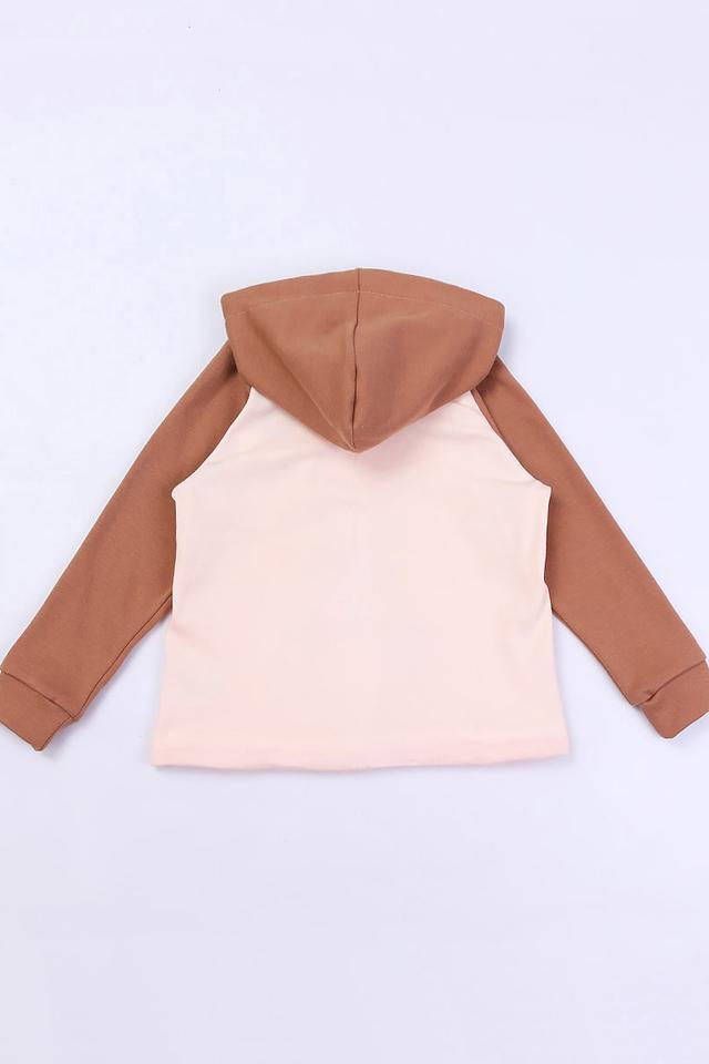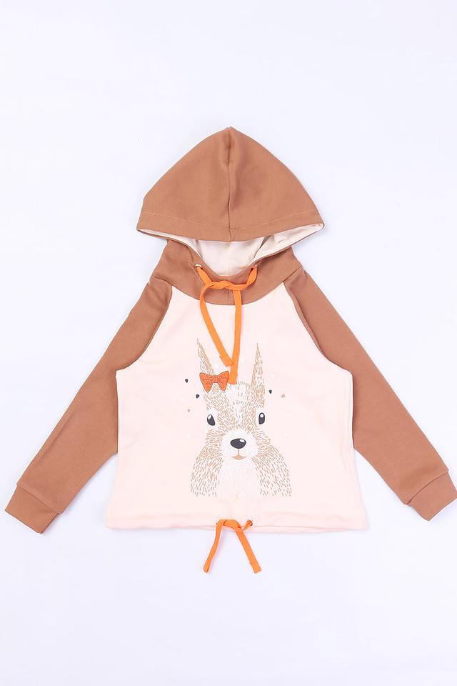 Этот очаровательный джемпер от бренда КотМарКот станет прекрасным дополнением к гардеробу юной модницы. Джемпер выполнен в нежной бежевой цветовой гамме с акцентами коричневого на рукавах и капюшоне.
