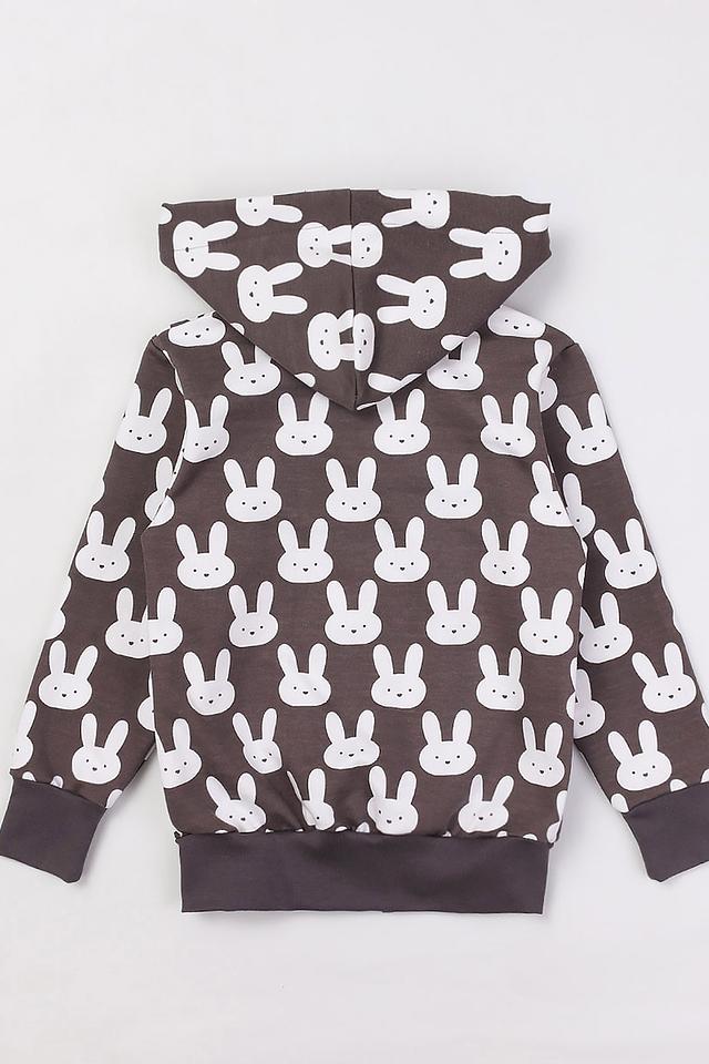 Джемпер КотМарКот серого цвета с забавным принтом в виде белых зайчиков — отличный выбор для маленьких модниц. Удобная застёжка-молния и капюшон делают эту модель практичной и комфортной для повседневной носки. Состав: хлопок 100%