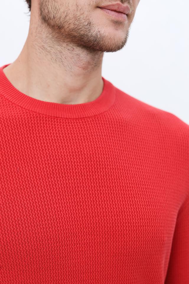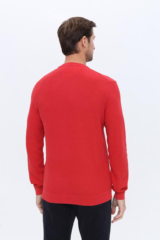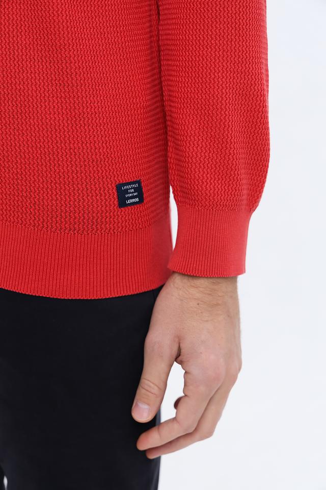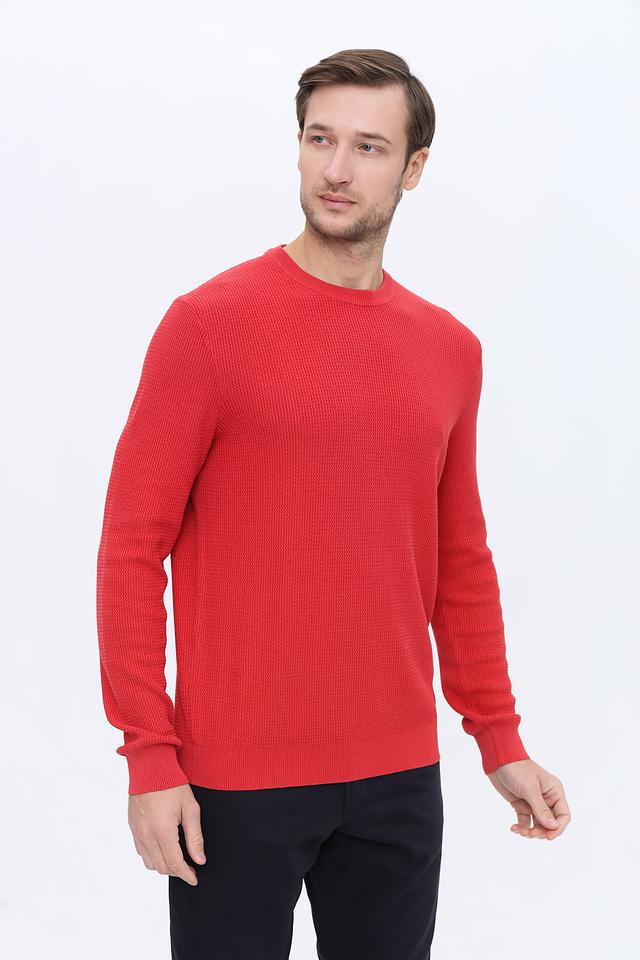 Мужской джемпер Lerros красного цвета выполнен из 100% хлопка и имеет текстурную вязку. Классический крой и круглый вырез горловины делают его универсальным элементом гардероба. Состав: хлопок 100%