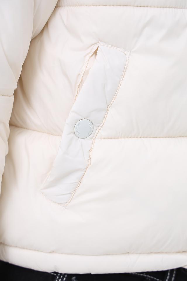 Куртка имеет укороченный крой, который подчеркивает талию и придает силуэту женственность. Выполнена из 100% полиэстера, что обеспечивает легкость, тепло и устойчивость к влаге.