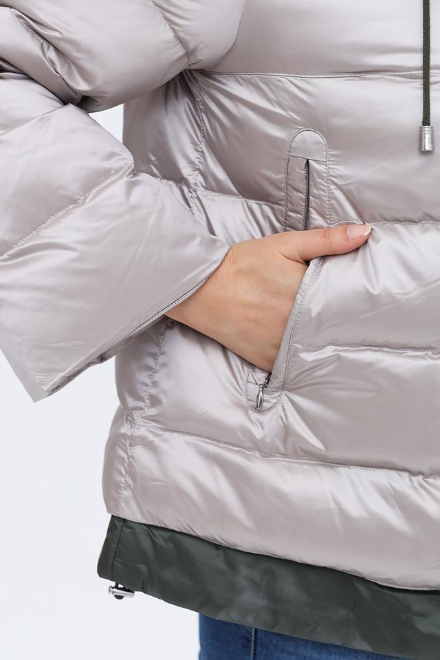 Куртка выполнена в сером цвете с элементами хаки, что придает ей стильный и универсальный вид. Стеганая текстура не только добавляет визуальный интерес, но и обеспечивает дополнительное утепление.