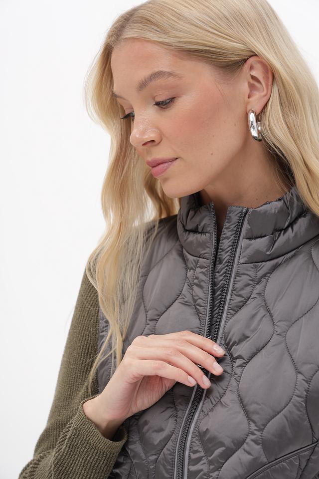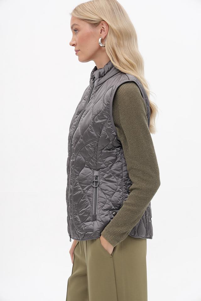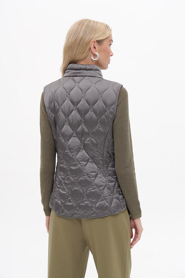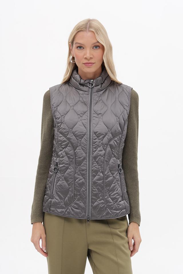 Стеганая текстура придает жилету современный вид, а серый цвет делает его универсальным и легко сочетаемым с различными элементами одежды. Этот жилет идеально подойдет для создания многослойных образов в прохладную погоду.
