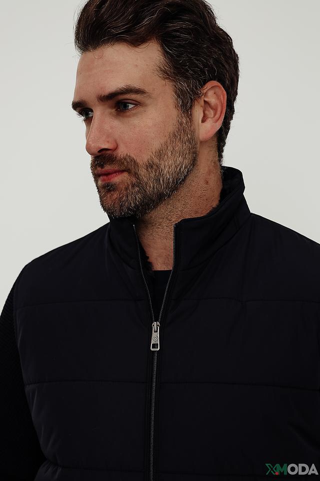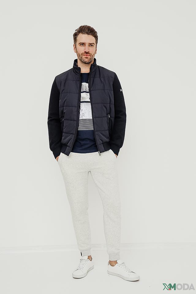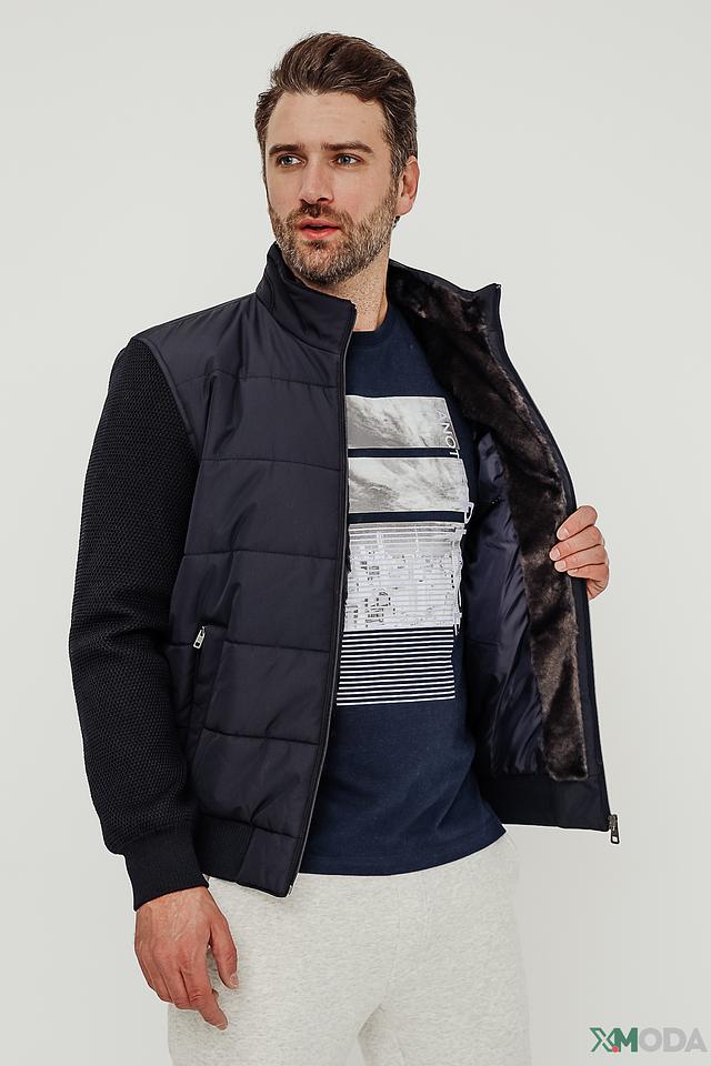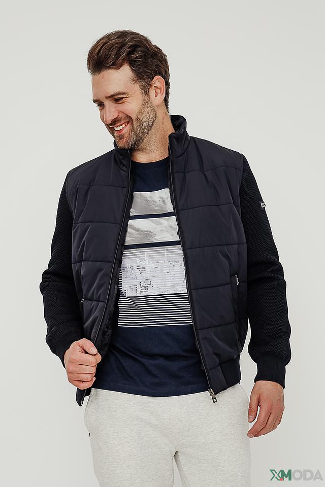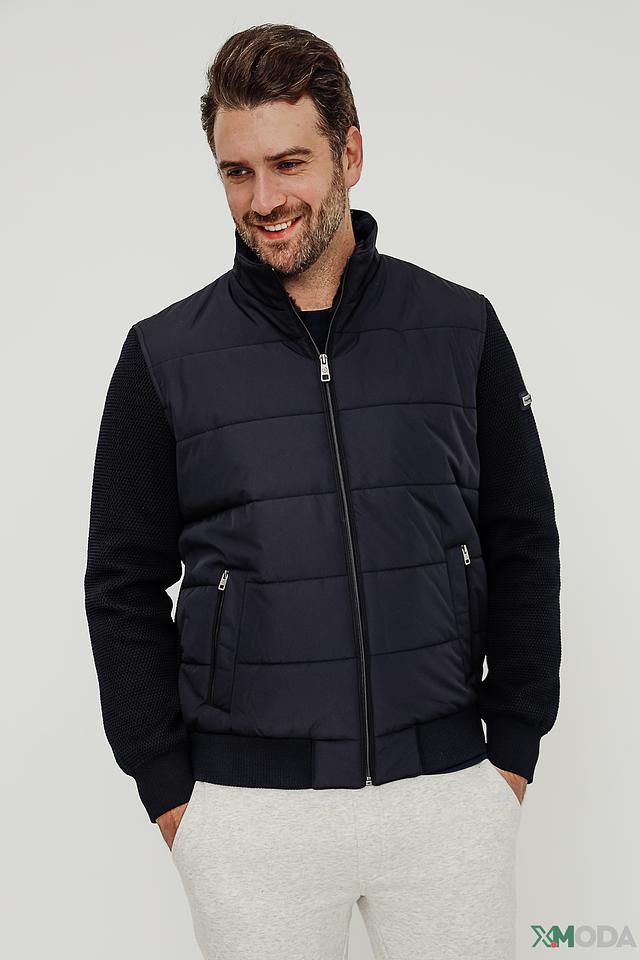 Стильная мужская куртка Bugatti синего цвета с комбинированным дизайном. Модель выполнена из полиэстера и имеет стеганую лицевую часть, а также вставки из трикотажа на рукавах и плечах, что обеспечивает комфорт и свободу движений. Состав: полиэстер 100%