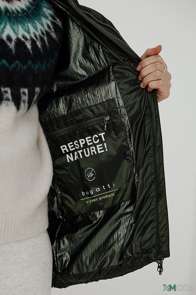 Внутренняя подкладка выполнена из полиэстера, что обеспечивает дополнительный комфорт при носке. На подкладке имеется яркий принт с надписью “RESPECT NATURE!” и логотипом бренда Bugatti.