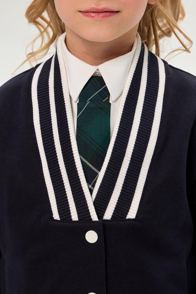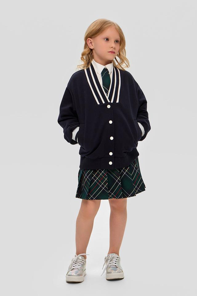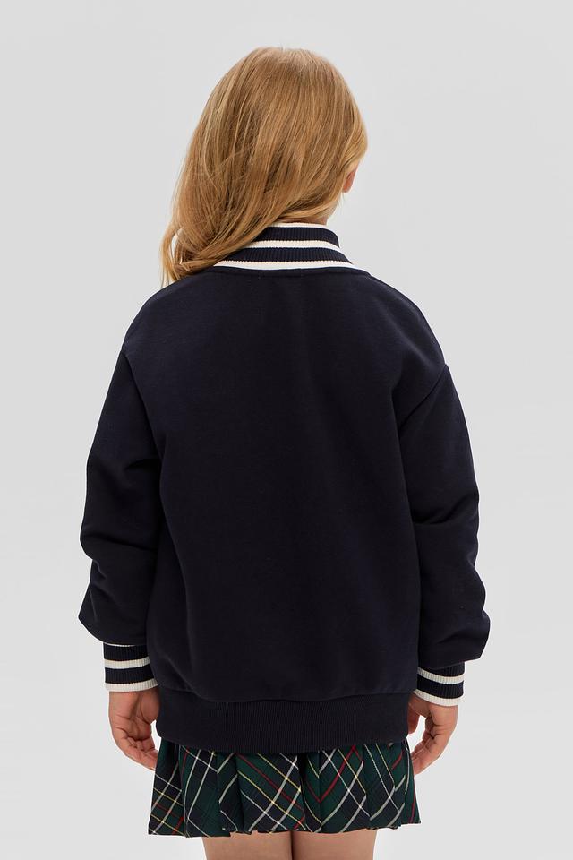 Стильная куртка-бомбер Choupette темно-синего цвета станет отличным дополнением к детскому гардеробу. Модель выполнена из хлопка с добавлением полиэстера, имеет застежку на пуговицы и полоску в белую полоску на манжетах и воротнике. Состав: хлопок 90%, полиэстер 10%