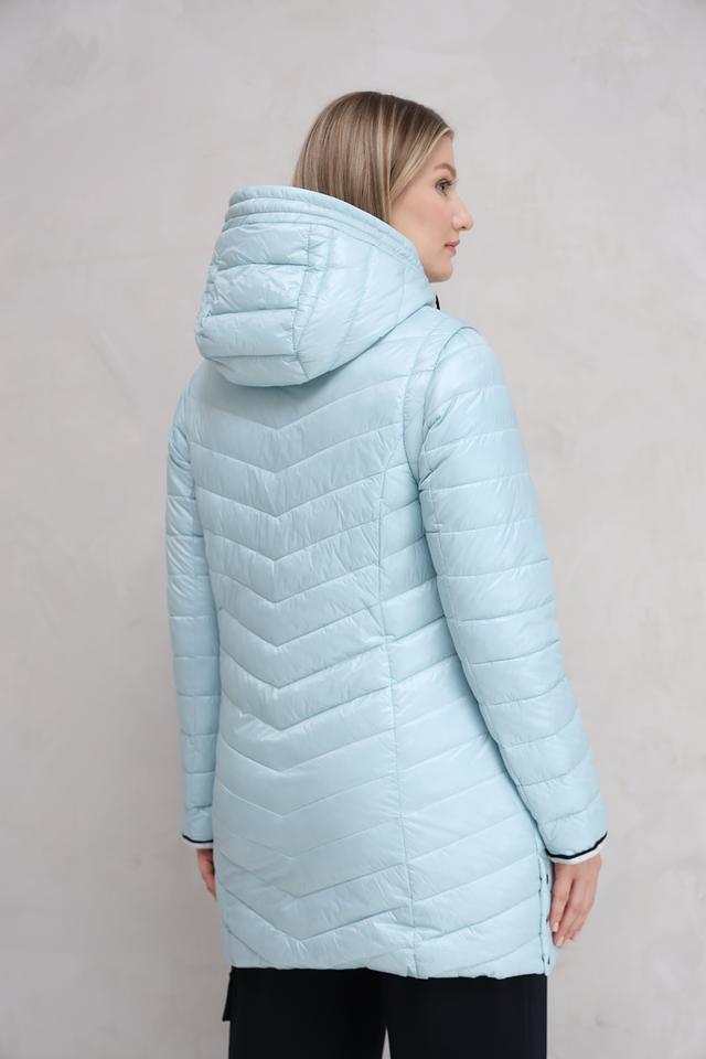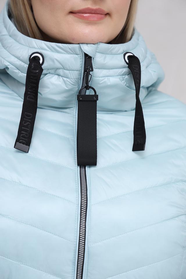 Эта куртка от бренда District станет отличным дополнением к вашему гардеробу. Она выполнена в нежном голубом цвете и имеет стеганую текстуру, которая придает ей современный вид.