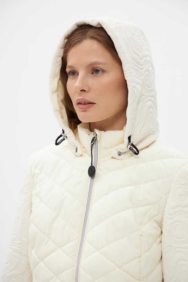 Эта куртка от бренда District станет отличным дополнением к вашему гардеробу. Выполнена в бежевом цвете, имеет стеганую фактуру и удобный капюшон.