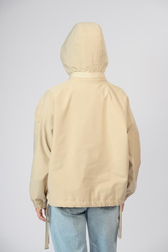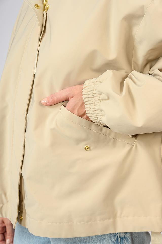 Материал куртки – 100% полиэстер, что делает её лёгкой, прочной и простой в уходе. Эта куртка идеально подойдёт для повседневной носки в прохладную погоду. Особенности кроя включают в себя манжеты на рукавах с завязками и кулиску на талии для регулировки силуэта.