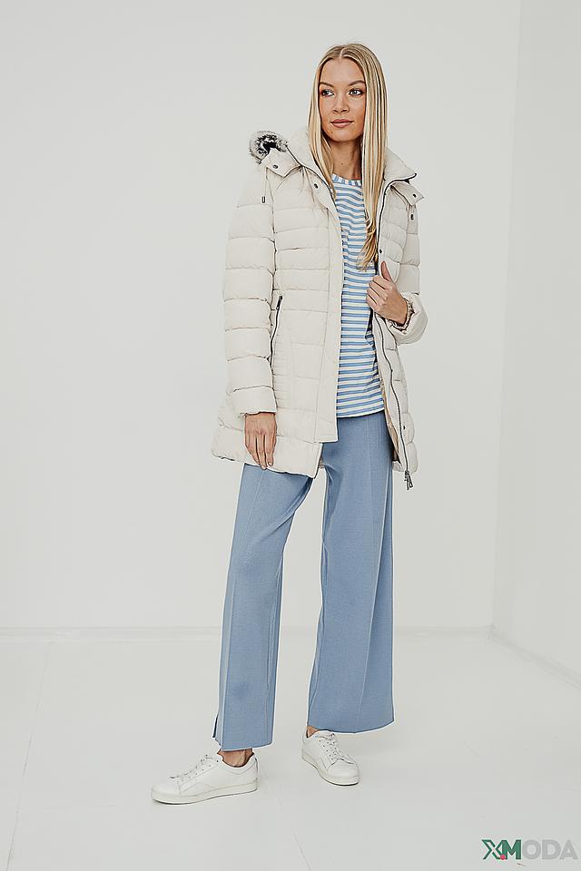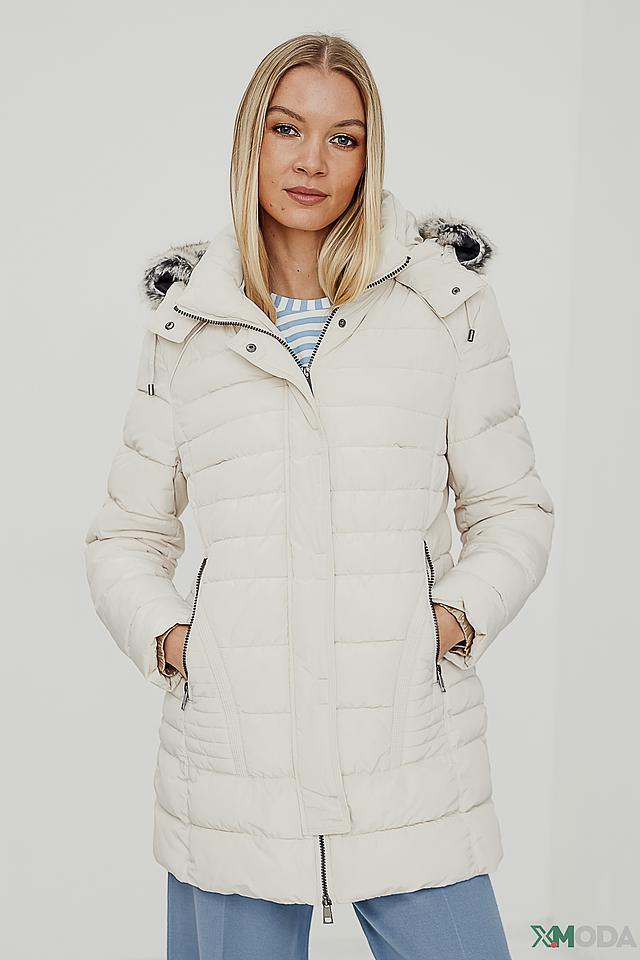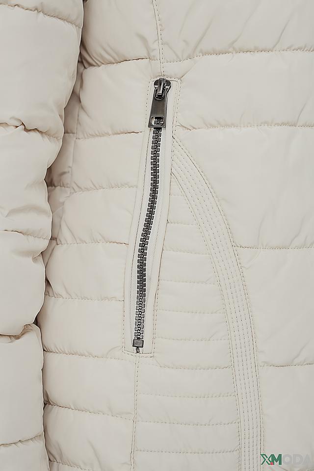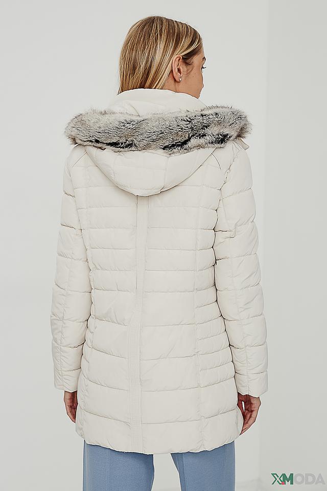 Куртка оснащена капюшоном, который можно отстегнуть, и меховой отделкой, придающей образу изысканность. Застежка – молния. Наличие боковых карманов позволяет удобно хранить необходимые мелочи.