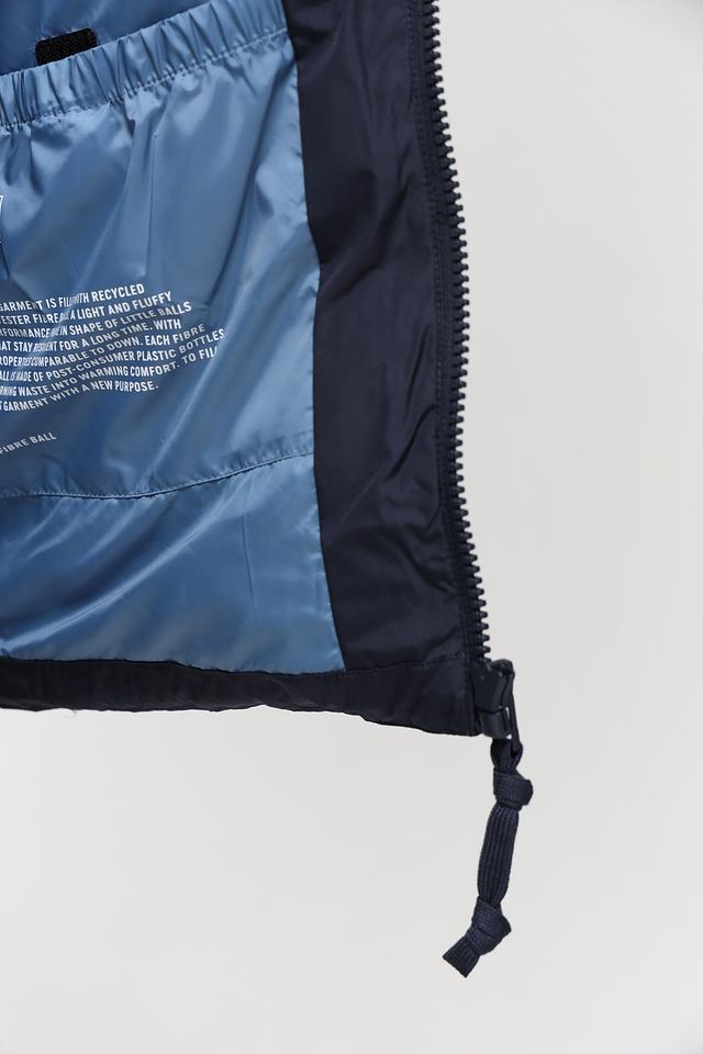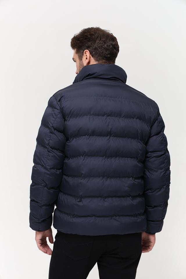 Куртка имеет классический крой и синий цвет, который легко сочетается с различными элементами одежды. Воротник-стойка добавляет современный вид, а молния обеспечивает удобство застегивания и расстегивания.