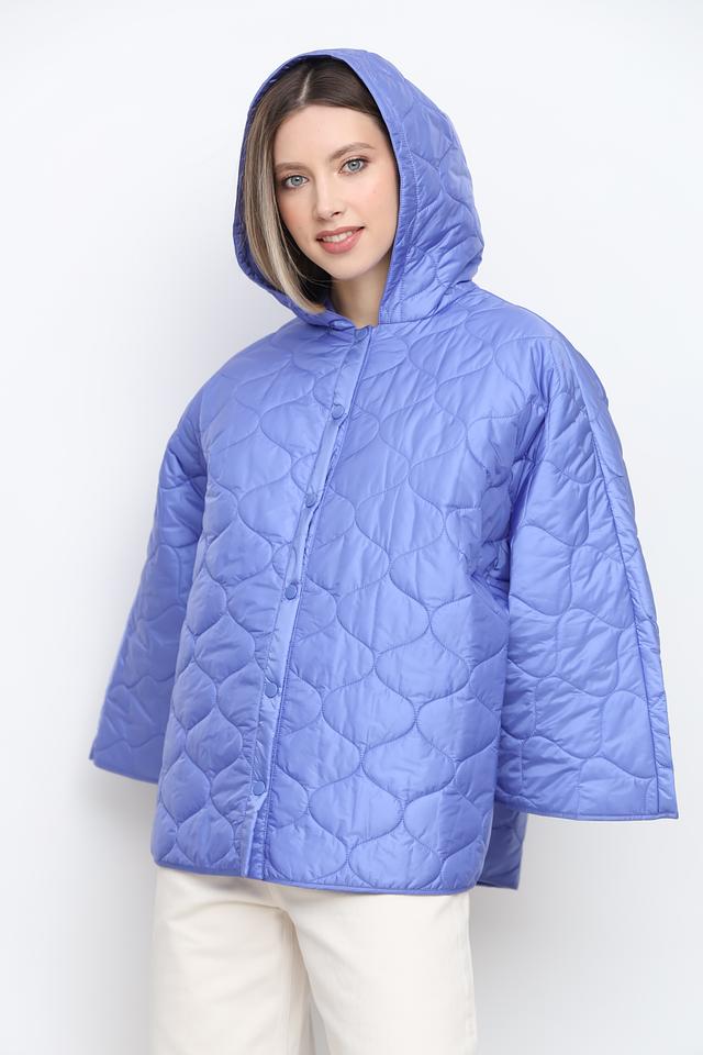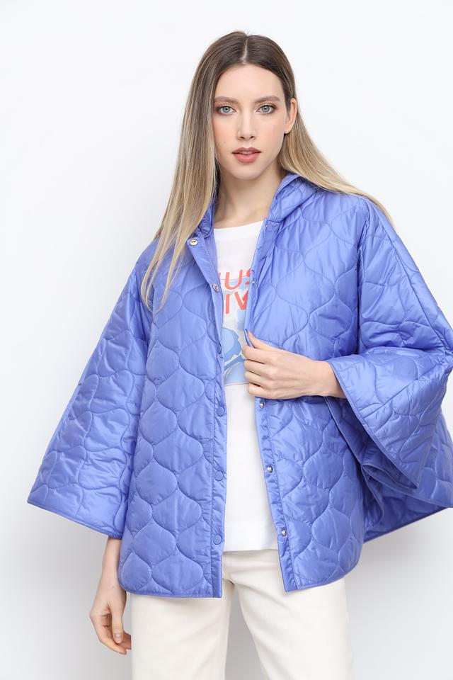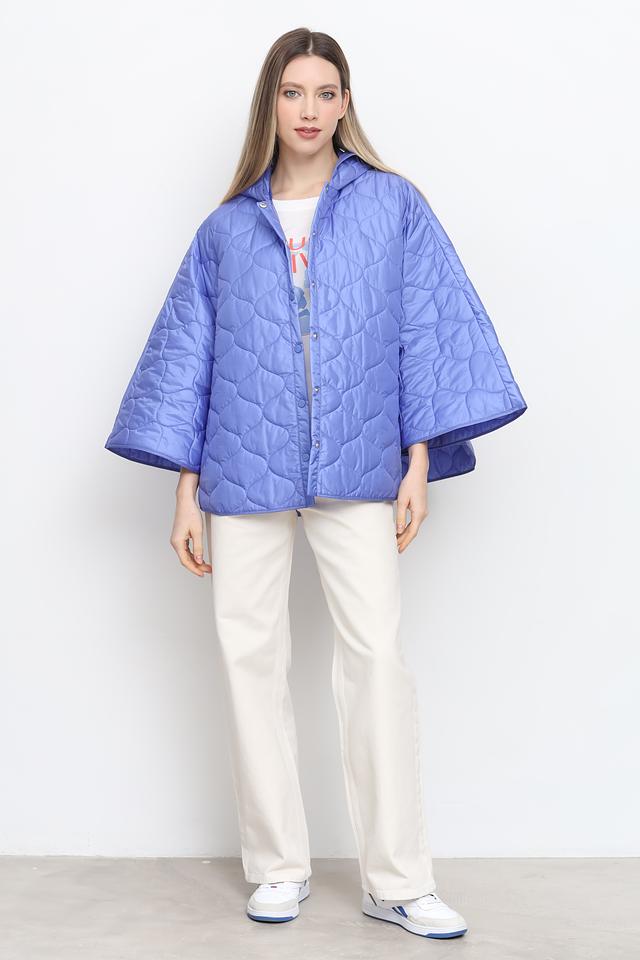 Модель имеет прямой крой, капюшон и застегивается на кнопки по всей длине. Рукава куртки выполнены в форме крыльев, что придает ей оригинальный и современный вид. Стеганая текстура добавляет куртке объема и фактурности.