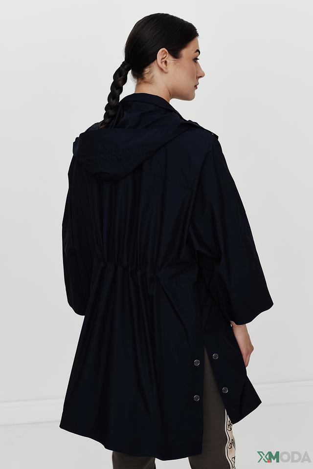 Куртка имеет прямой крой, капюшон и рукава три четверти, что придает ей современный вид. Застежка – молния. Модель дополнена боковыми карманами.
