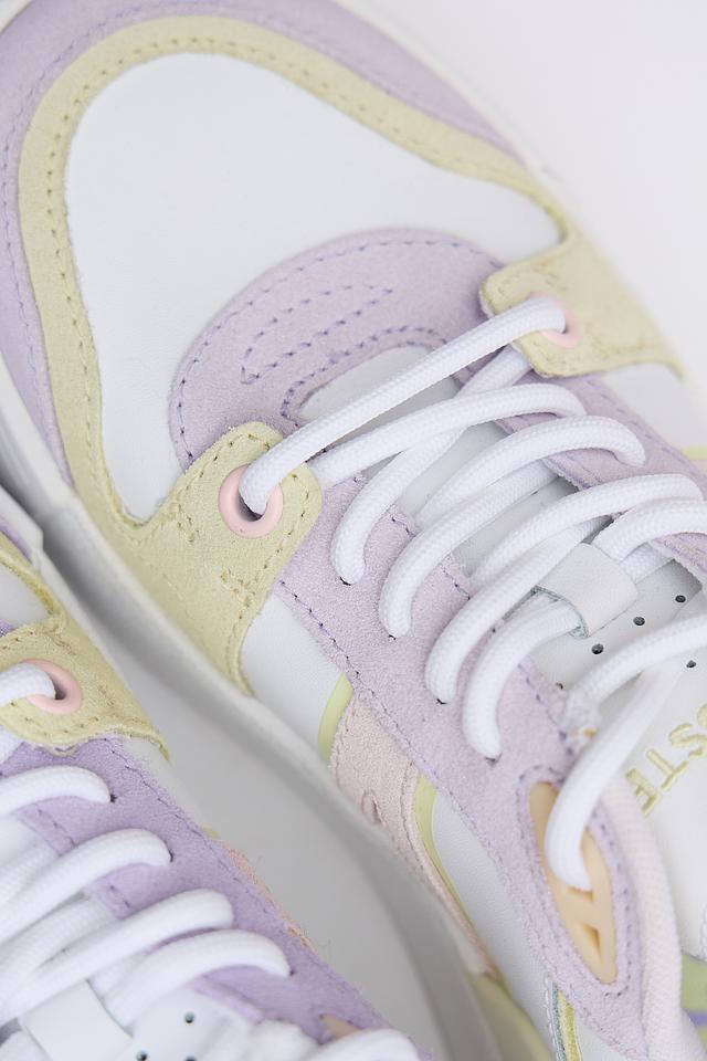 Кроссовки выполнены в нежной пастельной цветовой гамме, сочетающей в себе оттенки бледно-жёлтого, нежно-лилового и белого. Верх кроссовок выполнен из комбинации натуральной кожи и замши, что придает им элегантный вид и обеспечивает долговечность. Подкладка выполнена из 100% полиэстера, что обеспечивает комфорт при носке.