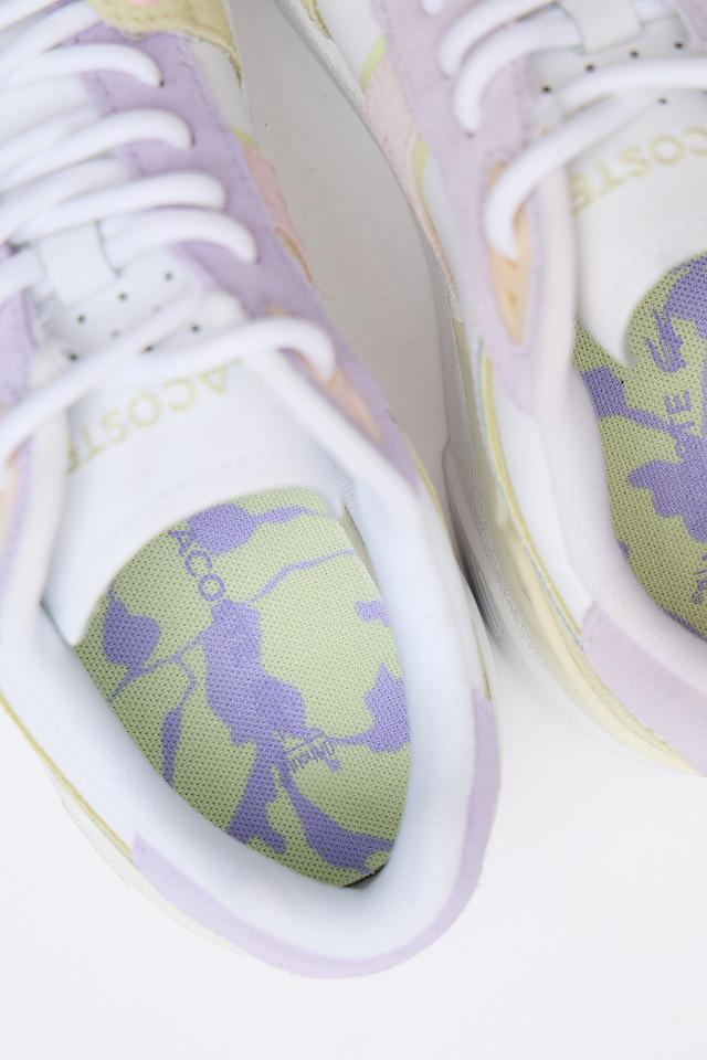 Белая массивная подошва из 100% резины обеспечивает отличное сцепление с поверхностью и амортизацию. Логотип Lacoste на боковой стороне кроссовка подчеркивает принадлежность к известному бренду. Внутренняя стелька с цветочным принтом добавляет оригинальности. Эти кроссовки станут отличным дополнением к вашему образу и подчеркнут ваш индивидуальный стиль.