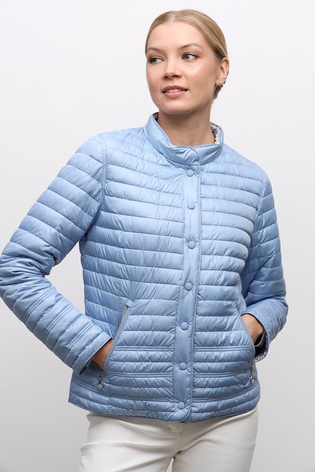 Эта куртка от Lebek станет незаменимой вещью в вашем гардеробе в прохладную погоду. Она выполнена в нежном голубом цвете и имеет стеганую фактуру, что придает ей особый шарм.